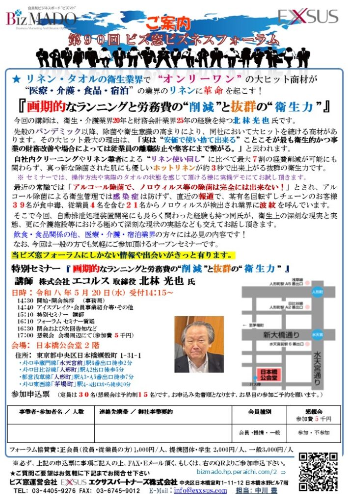 特別セミナー 『画期的なランニングと労務費の“削減”と抜群の“衛生力”』